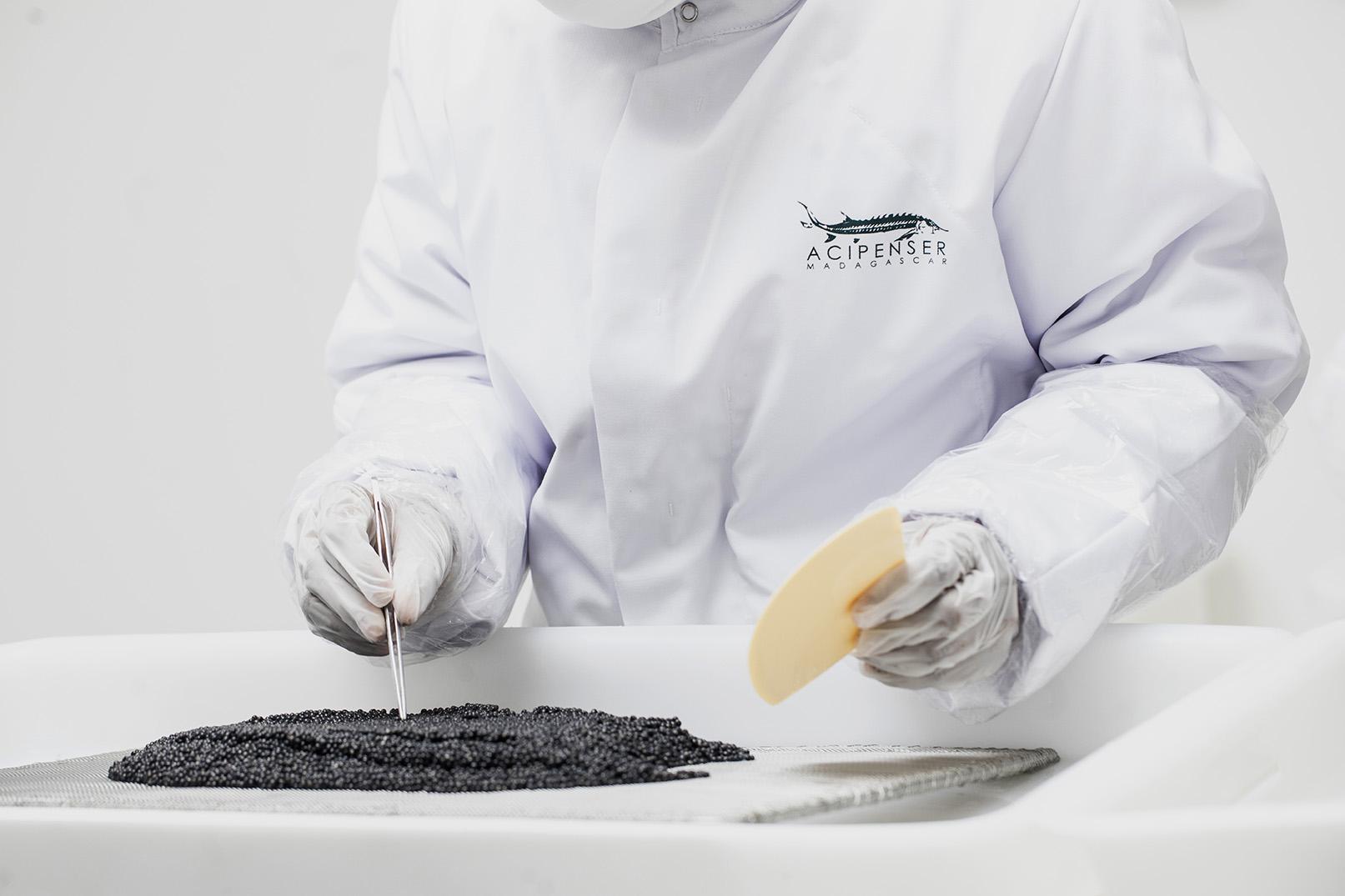 In addition to this meticulous care, Acipenser’s vertical integration ensures full control over production, resulting in top-tier caviar. The sturgeon feed is created within the farm itself, composed of natural ingredients sourced from mainly local agriculture, purchased as close to the farm as possible to minimize carbon footprint. “The food’s quality has an undeniable impact on the fish flesh and, of course, on its caviar. No antibiotics or hormones are administered in the farming process,” adds Delphyne. She also credits the surrounding environment for contributing to a stellar finished product, saying that the Malagasy climate and terroir contribute greatly to the sturgeon’s growth and maturation.